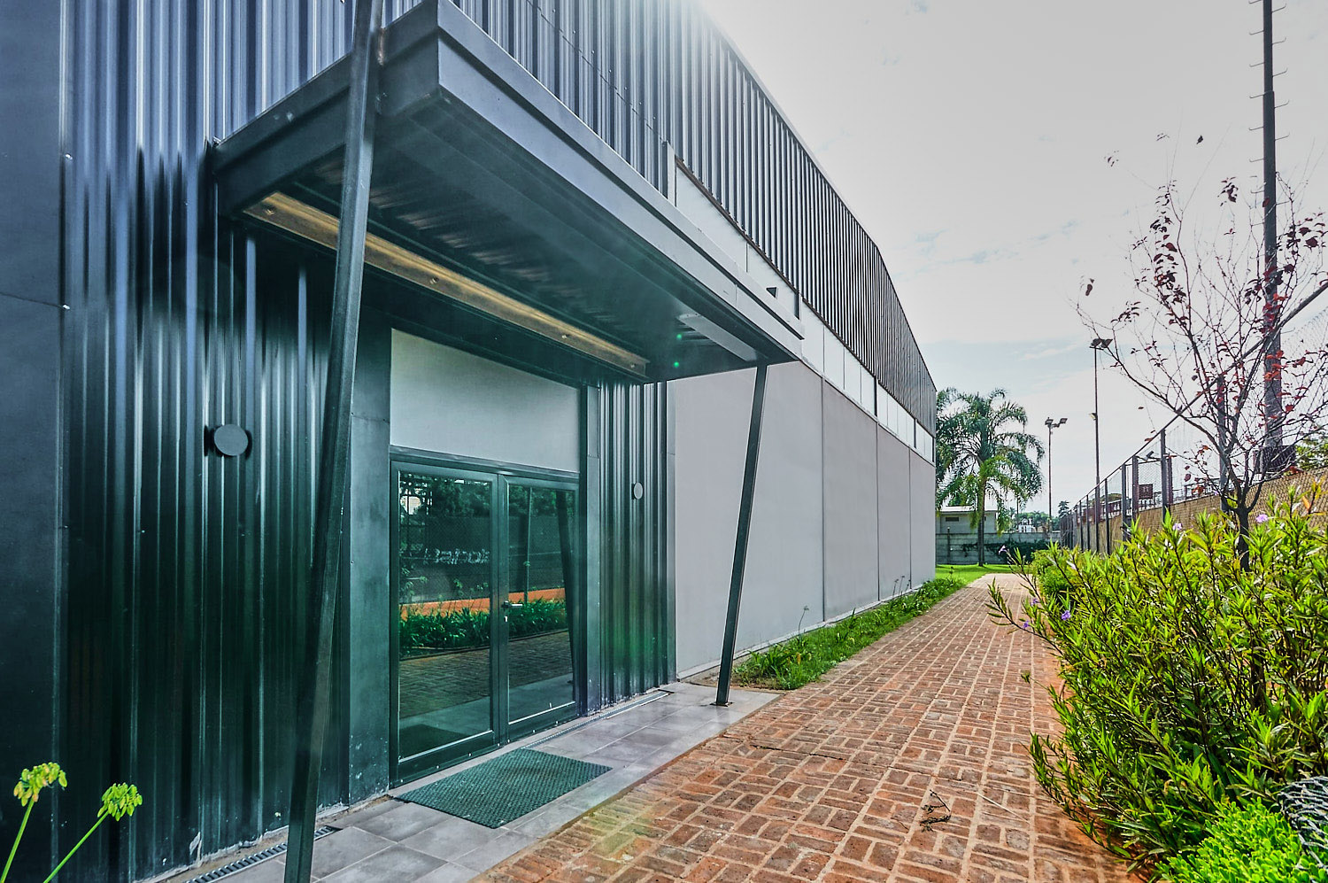 Descripción del proyecto: Edificio de uso deportivo con estructura metálica. Fuimos convocados para realizar el cierre del complejo y conformar, en conjunto con la cubierta, un sistema autoportante que permitiera tener grandes avenimientos. 650 m2 y 62 días de ejecución de obra.